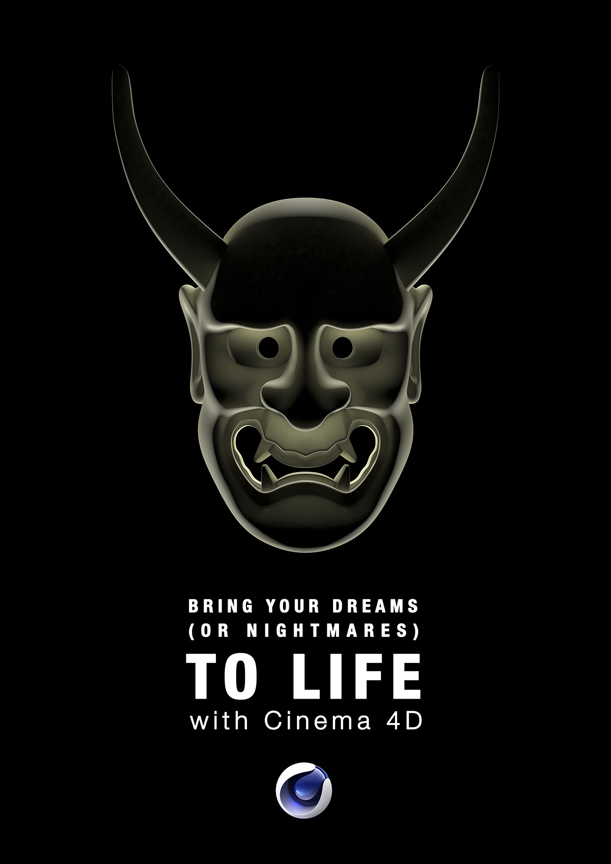 Hannya mask modeled and rendered in Cinema 4D for a school 3D course
